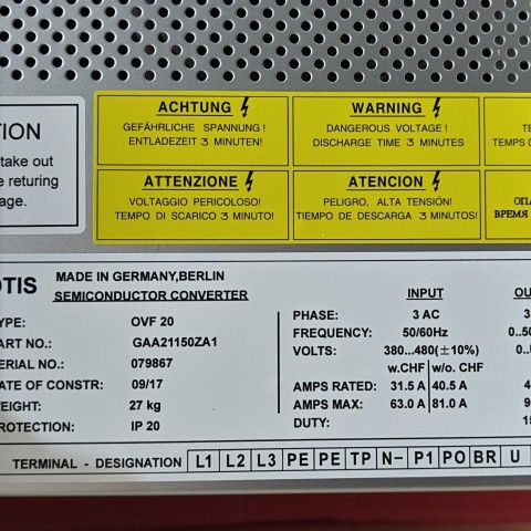 INVERTER OTIS OVF20CR 480V 9KW W/O